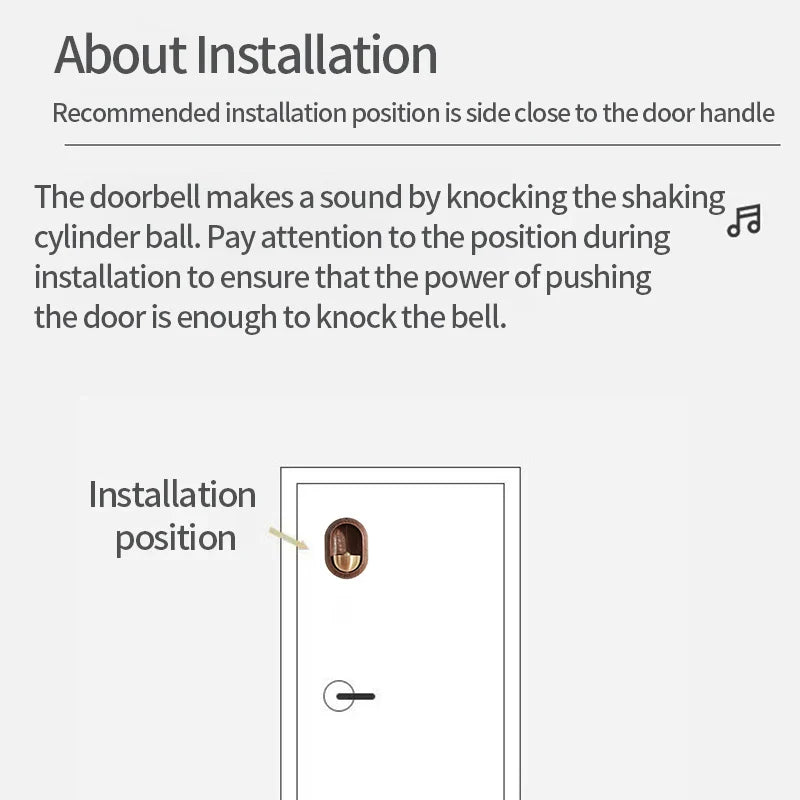 1. Wood and Brass Material: This doorbell is made of wood with brass bell, it is beautiful, strong and durable.